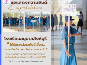 โรงเรียนอนุบาลสิงห์บุรี ได้รับรางวัลระดับดีเยี่ยม ประเภททีมเดี่ยว สมาชิกยุวกาชาด ระดับ 2