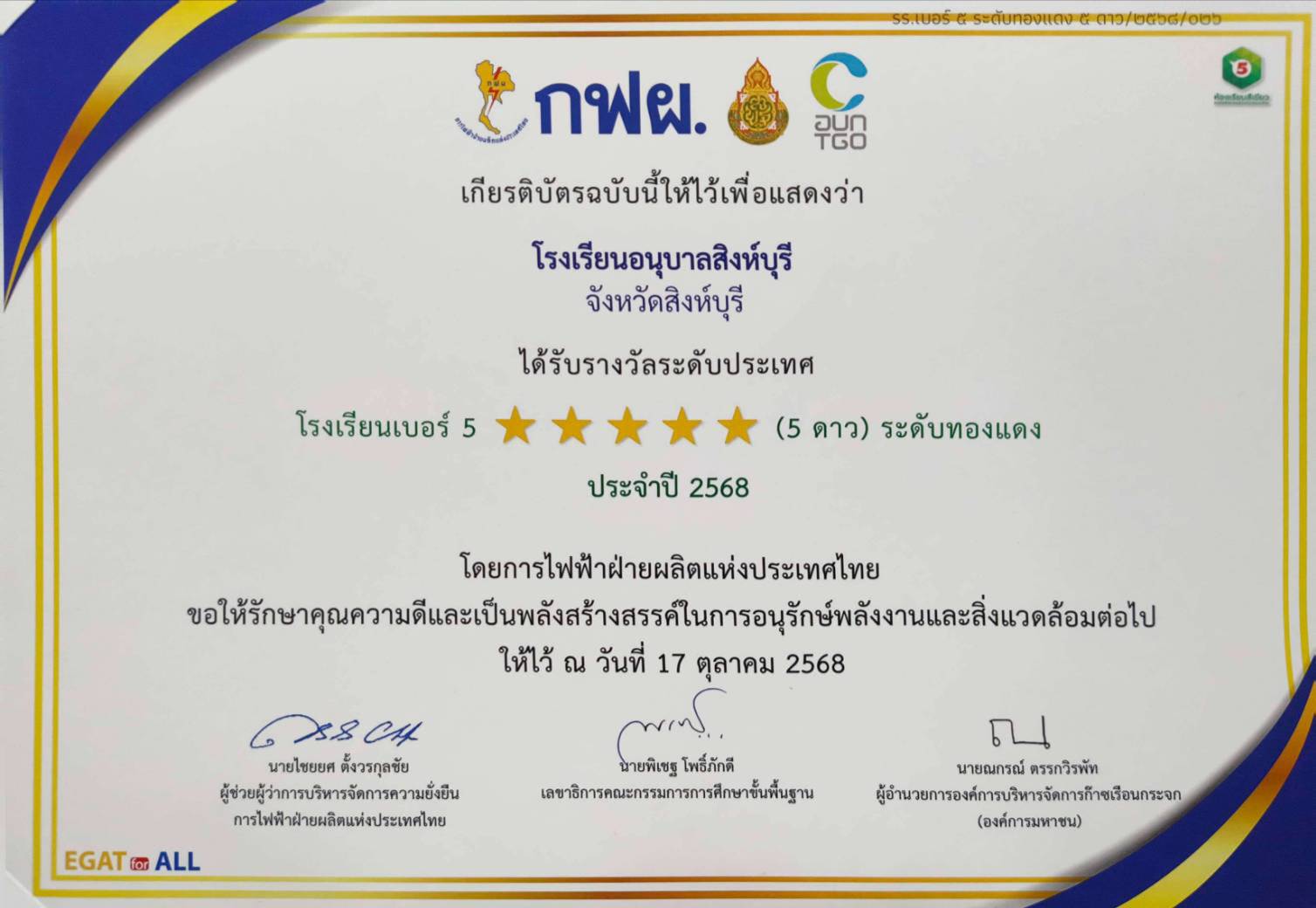 🎊โรงเรียนอนุบาลสิงห์บุรี ร่วมพิธีรับโล่รางวัล “โรงเรียนเบอร์ 5 (5ดาว) ระดับทองแดง ประจำปี 2568” วันที่ 1 ธันวาคม 2568 ณ หอประชุมเกษม จาติกวณิช อาคาร ต.040 การไฟฟ้าฝ่ายผลิตแห่งประเทศไทย สำนักงานกลาง จังหวัดนนทบุรี